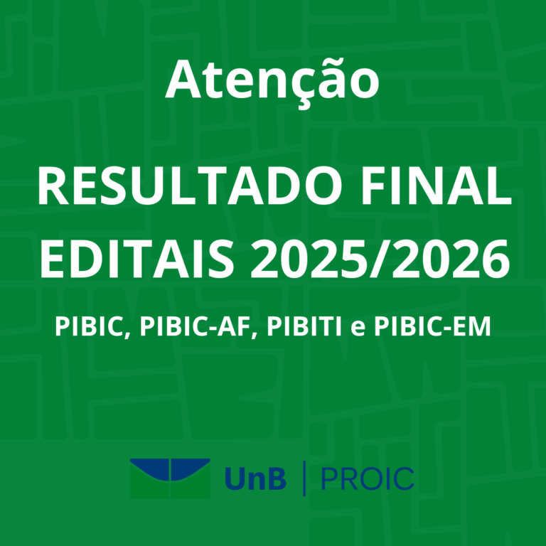 Editais ProIC / DPG / UnB – 2025/2026 A Diretoria de Fomento à Iniciação Científica...